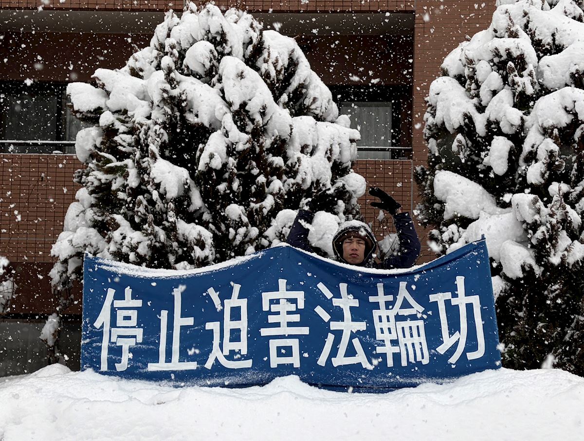 Praktykujący w Sapporo, położonym w najdalej na północ wysuniętym regionie Japonii, Hokkaido, zebrali się 16 lutego przed chińskim konsulatem. Wywiesili transparent z napisem „Stop prześladowaniom Falun Gong” i wezwali do położenia kresu trwającym naruszeniom praw człowieka w Chinach.