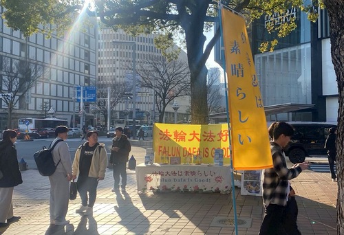 (Minghui.org) Praktykujący Falun Dafa w Nagoi, Fukuoce, Sapporo i Kumamoto zorganizowali szereg wydarzeń przed Chińskim Nowym Rokiem (17 lutego 2026 r.), w tym dystrybucję materiałów informacyjnych i protest przeciwko prześladowaniom przez Komunistycznej Partii Chin (KPCh) przed chińskimi konsulatami.