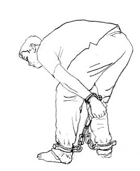 Ilustracja tortur: kajdanki i łańcuchy połączone razem