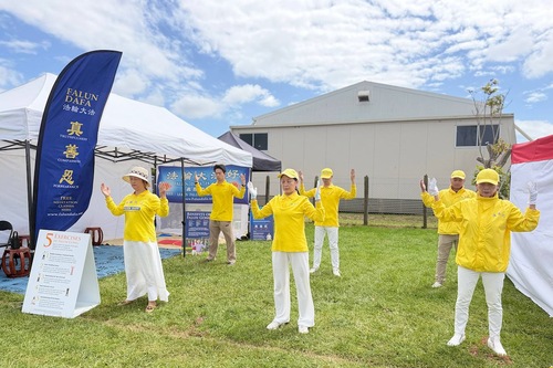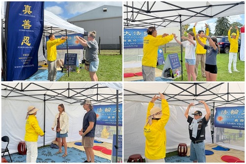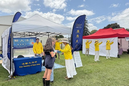 Praktykujący rozstawili stoisko i przedstawili Falun Dafa (znane również jako Falun Gong) szerokiej publiczności. Ich pokaz ćwiczeń przyciągnął wielu odwiedzających, a niektórzy nauczyli się ćwiczeń na miejscu. Jeden z mężczyzn powiedział, że podczas wykonywania ćwiczeń poczuł energię.