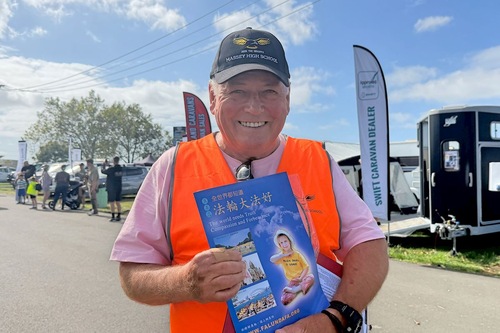 Zachęcał praktykujących: „Proszę, nie ustawajcie w swoich wysiłkach – bez względu na to, gdzie na świecie praktykujecie Falun Dafa, a zwłaszcza w Nowej Zelandii. Musicie wytrwać, ponieważ potrzebujemy ludzi, którzy nieustannie przypominają innym o prawdzie.