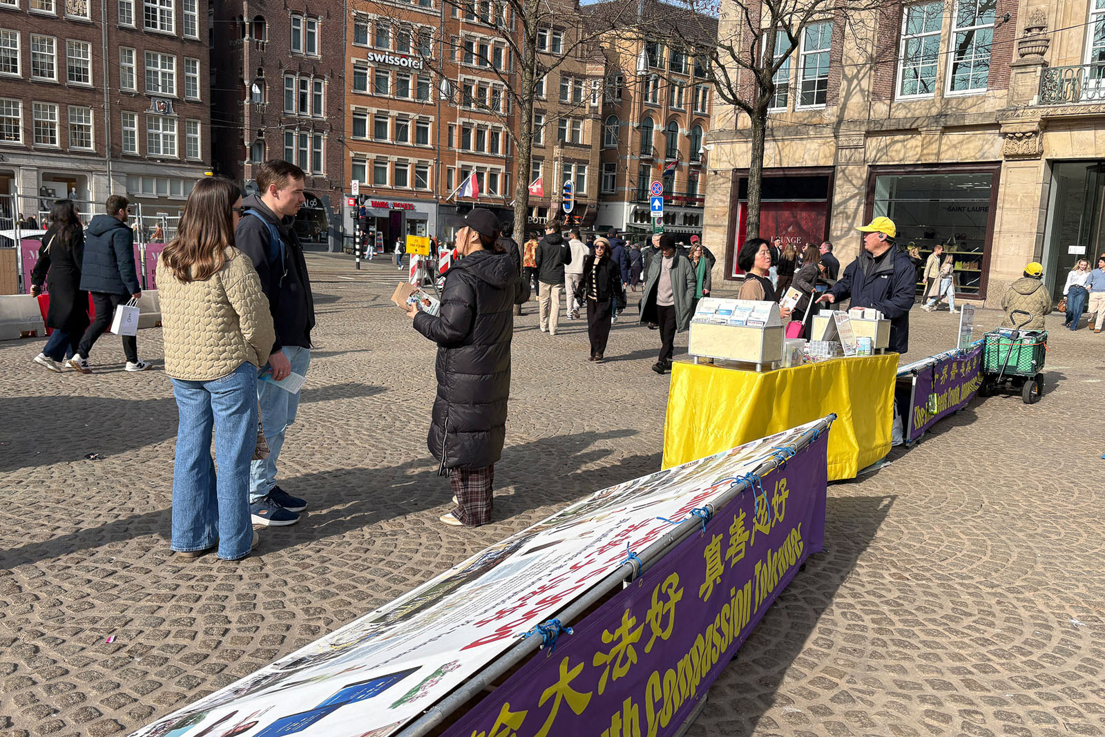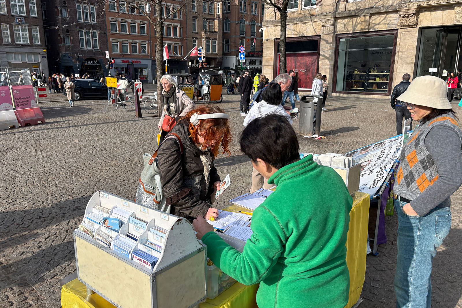 Ludzie dowiedzieli się o Falun Dafa i prześladowaniach KPCh podczas wydarzenia na placu Dam w Amsterdamie 8 marca 2026 r.