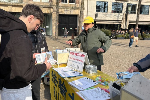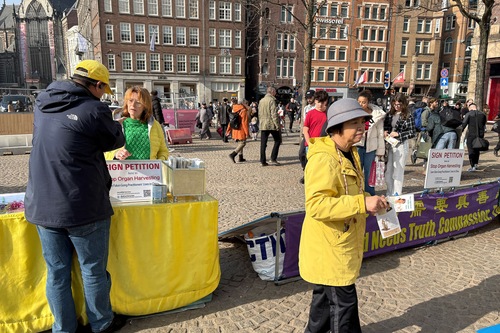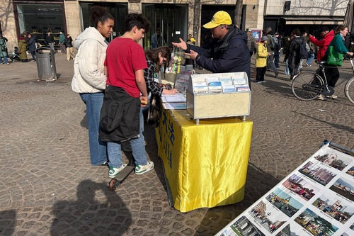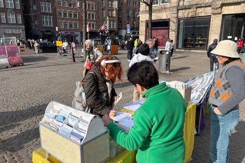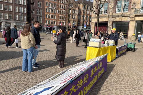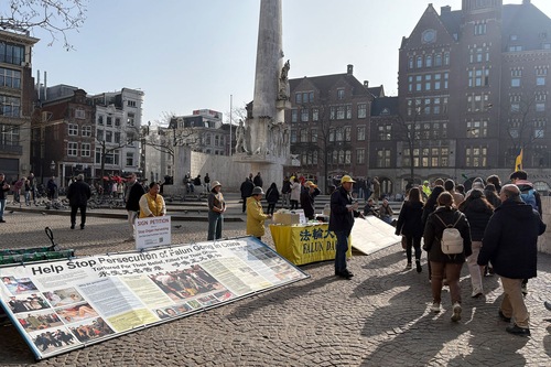 (Minghui.org) Praktykujący Falun Dafa 8 marca 2026 roku zorganizowali zajęcia na placu Dam w Amsterdamie, aby wprowadzić tę praktykę duchową. Podnieśli również świadomość na temat prześladowań ze strony Komunistycznej Partii Chin (KPCh).