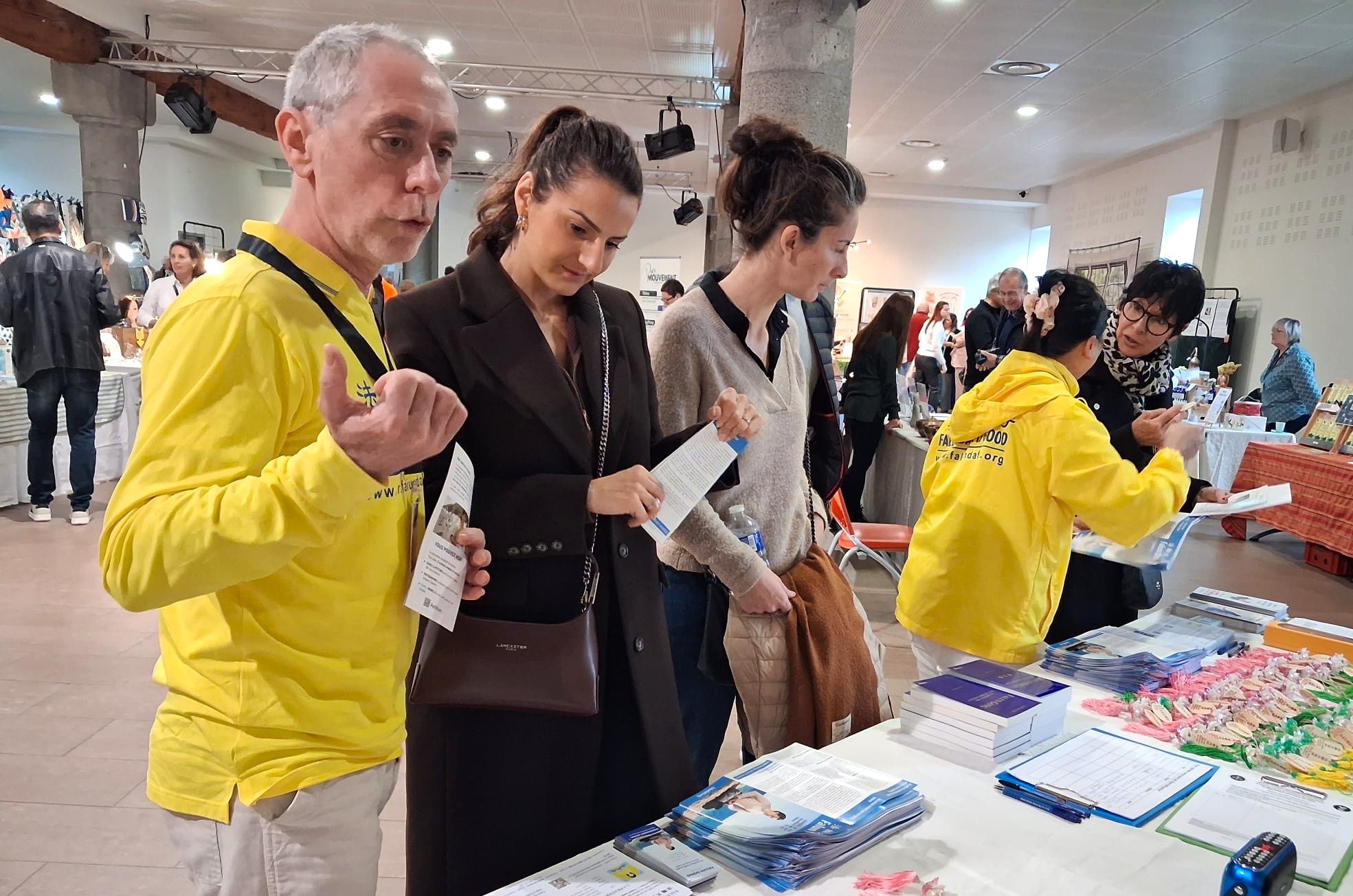 Claude Vernet, terapeuta zajmujący się refleksologią stóp, po rozmowie z praktykującym zapragnął dowiedzieć się więcej o Falun Dafa i zasugerował, aby zaprezentować tę praktykę na targach produktów ekologicznych. „Zdrowie nie ogranicza się wyłącznie do ciała fizycznego, ale przejawia się również na poziomie emocjonalnym i duchowym. Falun Dafa oferuje alternatywny sposób myślenia i może przyciągnąć uwagę wielu ludzi” – powiedział.