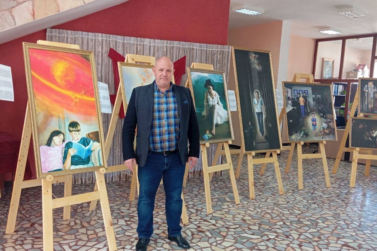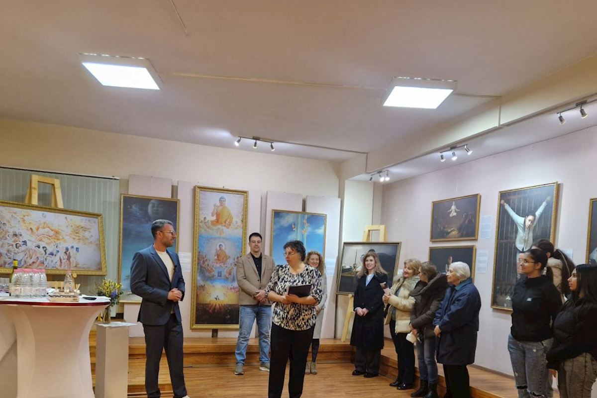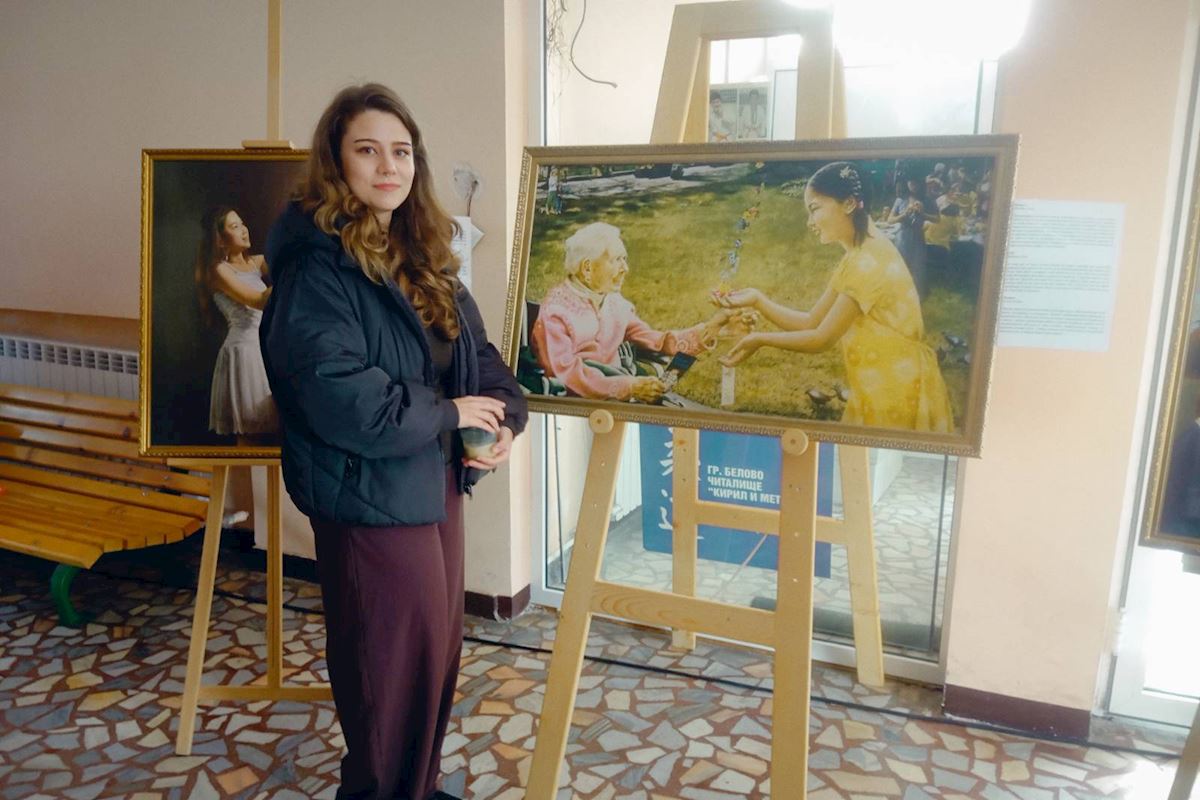 (Minghui.org) Wystawa Sztuka Zhen-Shan-Ren (Prawda-Życzliwość-Cierpliwość) odbyła się w Ihtiman i Belovo, niedaleko stolicy Sofii, i trwała przez miesiąc, a jej otwarcie miało miejsce 20 lutego 2026 r. Wystawa odbyła się w Centrum Społeczności św. Cyryla i św. Metodego w Belovo oraz w Muzeum Historycznym w Ihtiman.
