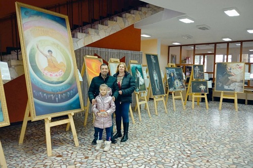 Rodzina Sestrimskich odwiedziła wystawę i była zainteresowana poznaniem Falun Dafa. Maria Sestrimska podzieliła się swoim rozumieniem obrazu „Uruchomienie kosmosu” – jednego z jej ulubionych: „Myślę, że przedstawia on oczyszczanie duszy na wszystkich poziomach podczas kultywacji”.
