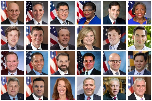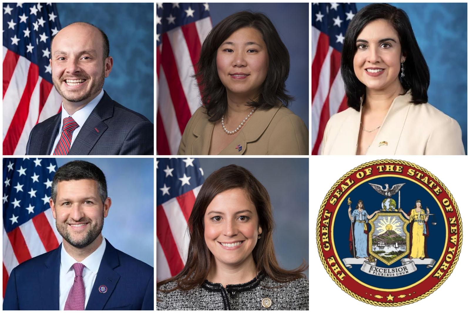 Proklamacje oraz listy gratulacyjne dla Shen Yun napłynęły od członków Kongresu Stanów Zjednoczonych (w kolejności według okręgów, od góry do dołu i od lewej do prawej): kongresmana Andrew Reeda Garbarino (2. okręg); kongreswoman Grace Meng (6. okręg); kongreswoman Nicole Malliotakis (11. okręg); kongresmana Patricka Ryana (18. okręg); oraz kongreswoman Elise Stefanik (21. Okręg)