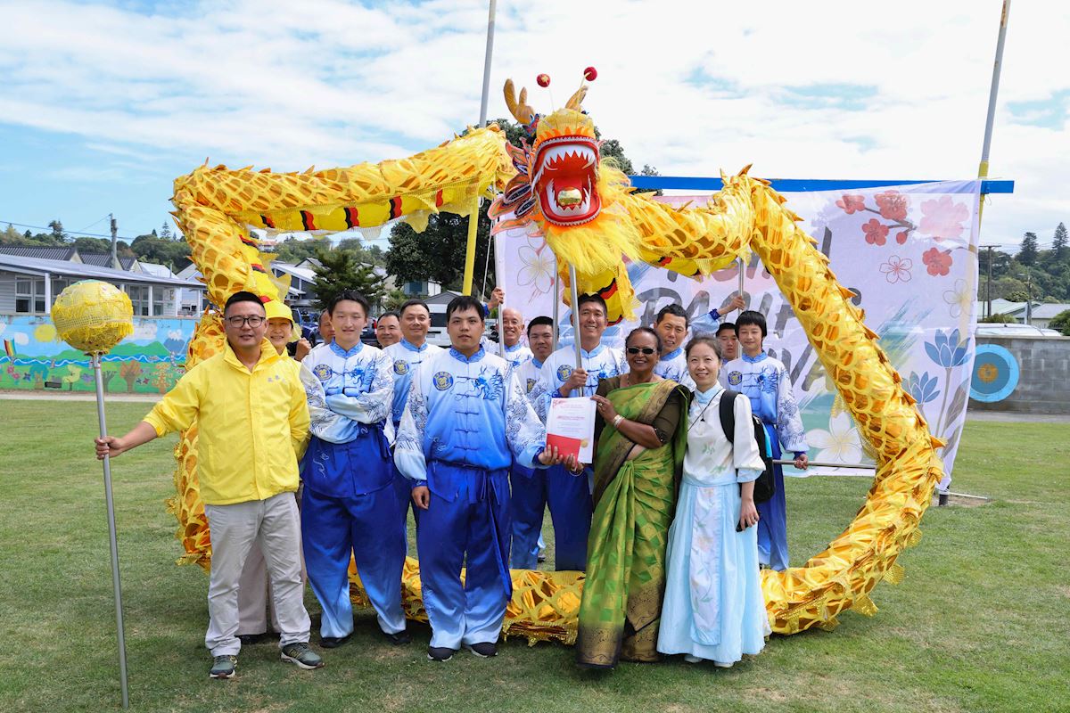 (Minghui.org) Pierwszy Festiwal Azji i Pacyfiku w Whanganui na Wyspie Północnej w Nowej Zelandii odbył się niedawno, 1 marca 2026 r. Organizatorka festiwalu, Tiana New, sekretarz Rady Wielokulturowej Rangitīkei–Whanganui, powiedziała, że celem festiwalu było stworzenie platformy wymiany wielokulturowej w społeczności. W wydarzeniu wzięli udział Carl Bates, poseł do parlamentu z Whanganui, oraz Andrew Tripe, burmistrz Whanganui.
