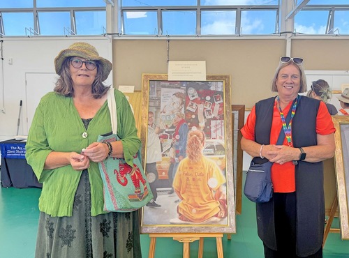 Sharon (po lewej) i jej przyjaciółka Judy oglądają obrazy