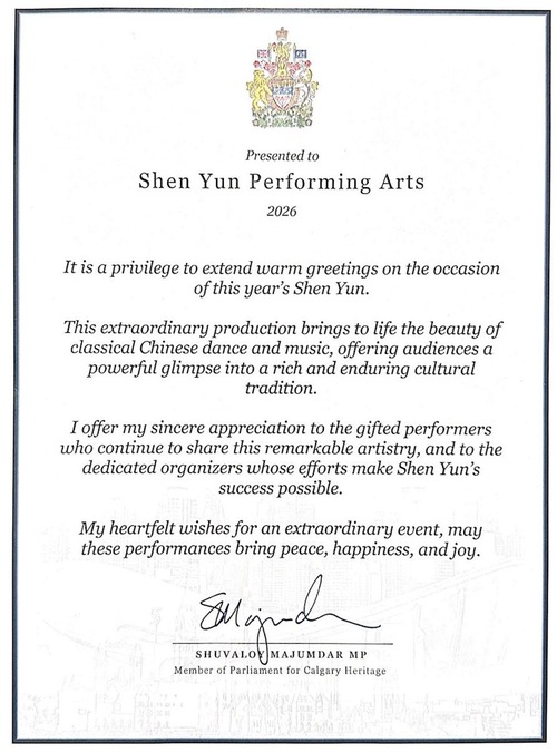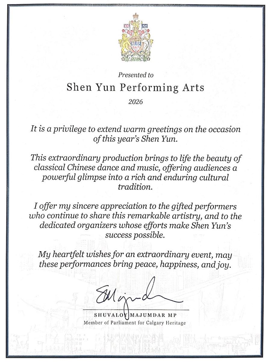 „Poprzez muzykę i taniec Shen Yun ożywia trwałe wartości, takie jak Prawdę, Życzliwość i Cierpliwość – zasady, które głęboko rezonują z Kanadyjczykami i odzwierciedlają fundamenty naszego wolnego i demokratycznego społeczeństwa”.