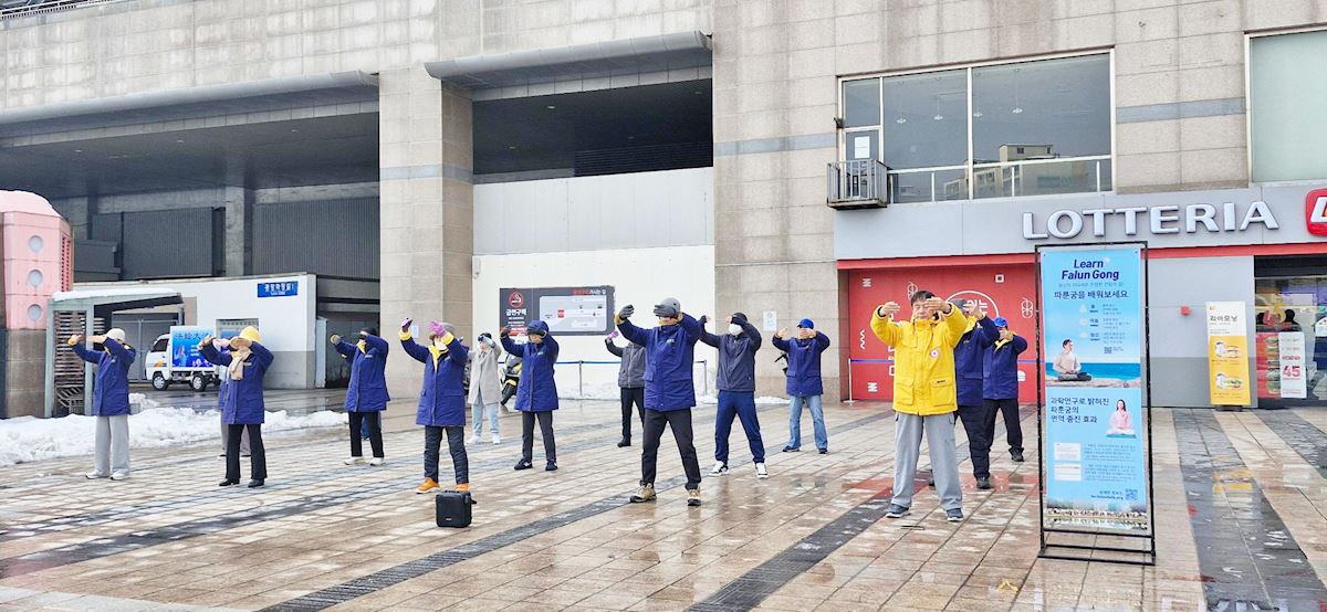 W każdy weekend praktykujący prezentują ćwiczenia Falun Gong na placu przed dworcem w Suwon. Rozdają też ulotki i odpowiadają na pytania ludzi. Wielu chińskich turystów rezygnuje z członkostwa w organizacjach KPCh po tym, jak poznają prawdziwą historię prześladowań.