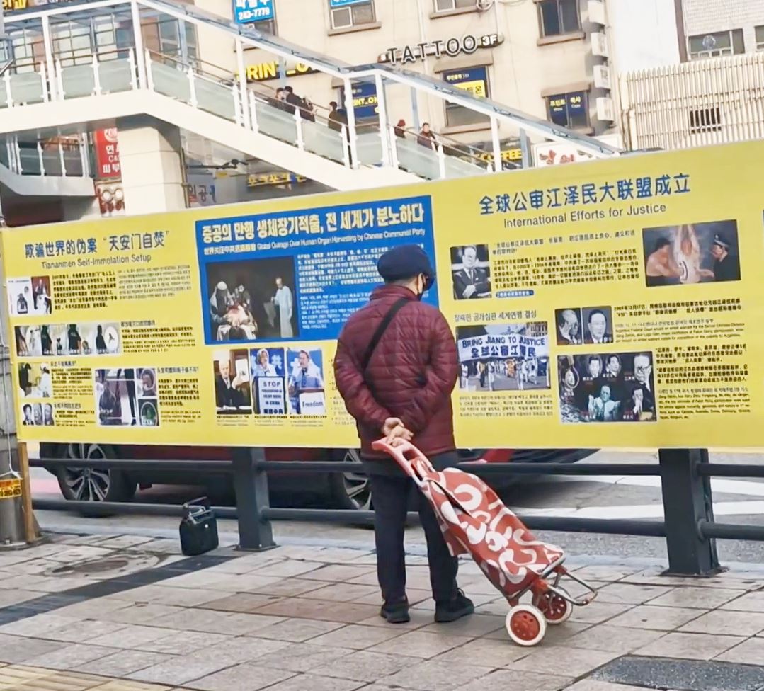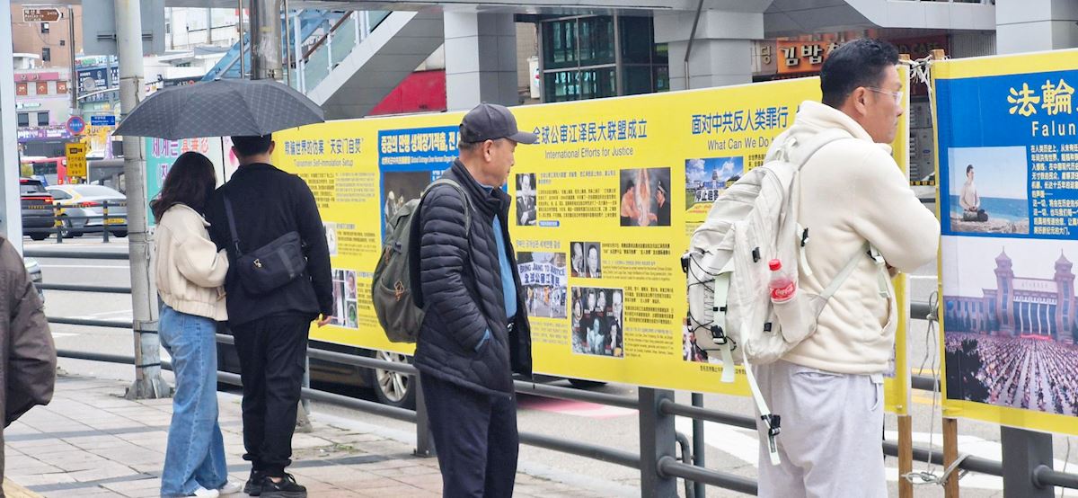 (Minghui.org) Suwon, największe miasto i stolica prowincji Gyeonggi w Korei Południowej, znane jest jako „miasto szacunku dla rodziców”. Znajduje się tu również siedziba Samsung Electronics, największej i najbardziej dochodowej firmy w kraju. Od wielu lat praktykujący przychodzą na dworzec kolejowy w Suwon, jeden z głównych węzłów komunikacyjnych regionu, gdzie opowiadają ludziom, zwłaszcza chińskim turystom, o Falun Gong, aby przestali wierzyć w kłamstwa Komunistycznej Partii Chin (KPCh).