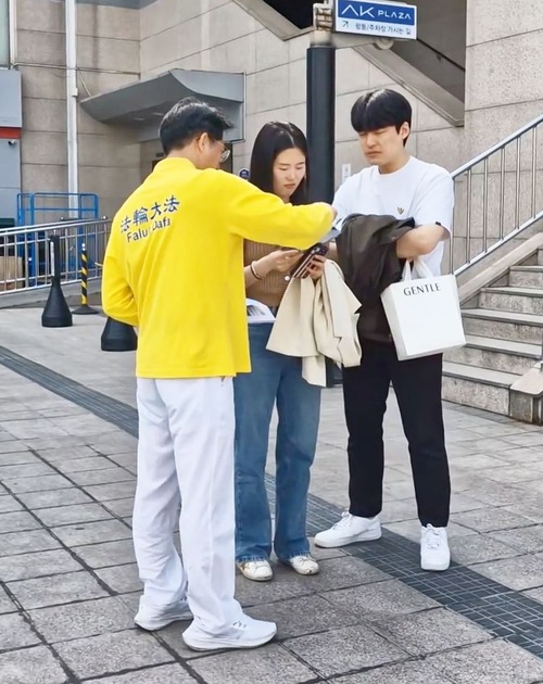 Jeden z mieszkańców zapytał, dlaczego praktykujący organizują te działania na stacji kolejowej. Pan Kim wyjaśnił, że zasady Falun Gong – Prawda, Życzliwość, Cierpliwość – są zakorzenione w tradycyjnej chińskiej i azjatyckiej kulturze. Dlatego praktyka ta jest dobrze przyjmowana w ponad 100 krajach. W rzeczywistości praktyka ta przynosi korzyści społeczeństwom, w tym Korei Południowej.