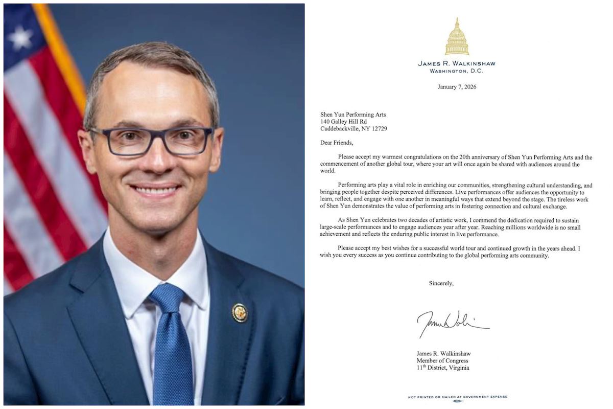 Kongresmen James Walkinshaw napisał: „Proszę przyjąć moje najserdeczniejsze gratulacje z okazji 20. rocznicy Shen Yun Performing Arts i rozpoczęcia kolejnej światowej trasy koncertowej, podczas której Państwa sztuka ponownie będzie prezentowana publiczności na całym świecie.