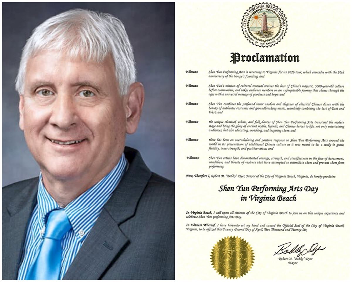 „W Virginia Beach wzywam wszystkich mieszkańców Virginia Beach do dołączenia do nas w tym wyjątkowym doświadczeniu i świętowania Dnia Sztuk Artystycznych Shen Yun”.