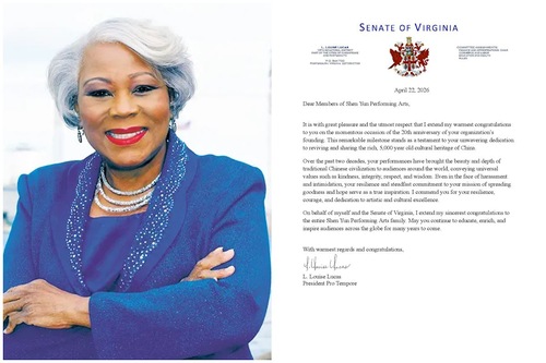 L. Louise Lucas, Przewodnicząca Pro Tempore Senatu Wirginii, napisała w liście do Shen Yun: