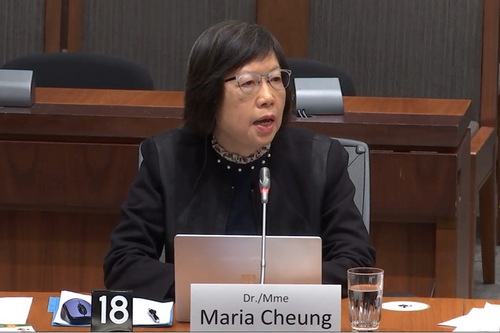 Dr Maria Cheung zeznaje przed podkomisją ds. międzynarodowych praw człowieka Izby Gmin w Ottawie 20 kwietnia 2026 r. (Zrzut ekranu z nagrania parlamentarnego)