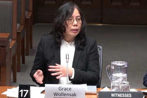 Grace Wollensak, krajowa koordynatorka Stowarzyszenia Falun Dafa w Kanadzie, zeznaje przed podkomisją Izby Gmin ds. międzynarodowych praw człowieka w Ottawie 20 kwietnia 2026 r. (Zrzut ekranu z filmu parlamentarnego)