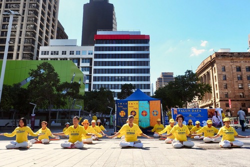 Praktykujący Falun Dafa zorganizowali akcję na Brisbane Square, aby upamiętnić Apel z 25 kwietnia