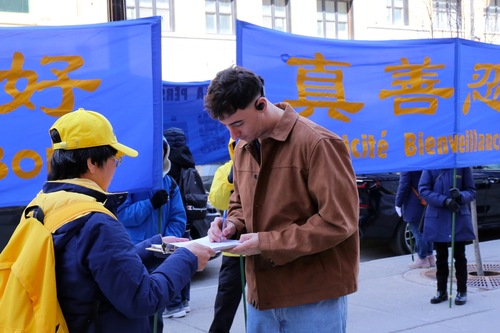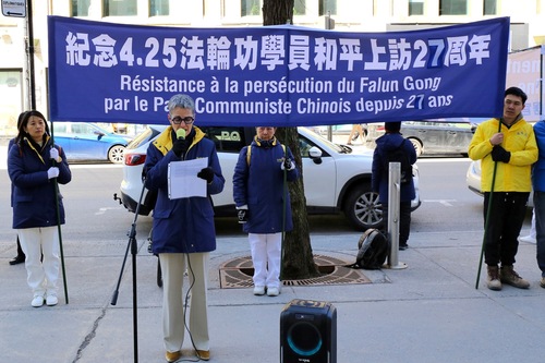 (Minghui.org) Z okazji 27. rocznicy apelu z 25 kwietnia w Pekinie praktykujący Falun Dafa zorganizowali 21 kwietnia 2026 r. wiec przed chińskim konsulatem w Montrealu. Protestowali przeciwko prześladowaniom ze strony Komunistycznej Partii Chin (KPCh) i wezwali rząd kanadyjski do podjęcia działań mających na celu powstrzymanie transgranicznych represji ze strony KPCh.