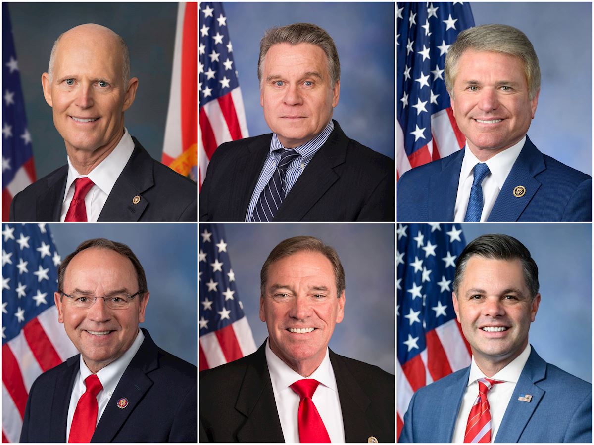 Kilku amerykańskich kongresmanów wydało oświadczenia, w których wyrażają poparcie dla praktykujących Falun Gong na całym świecie i zobowiązują się pociągnąć KPCh do odpowiedzialności, dopóki te prześladowania nie zostaną zakończone. Górny rząd, od lewej do prawej: senator Rick Scott (R-FL), przedstawiciel Chris Smith (R-NJ), przedstawiciel Michael McCaul (R-TX); dolny rząd, od lewej do prawej: przedstawiciel Tom Tiffany (R-WI), przedstawiciel Neal Dunn (R-FL), przedstawiciel Zach Nunn (D-IA)