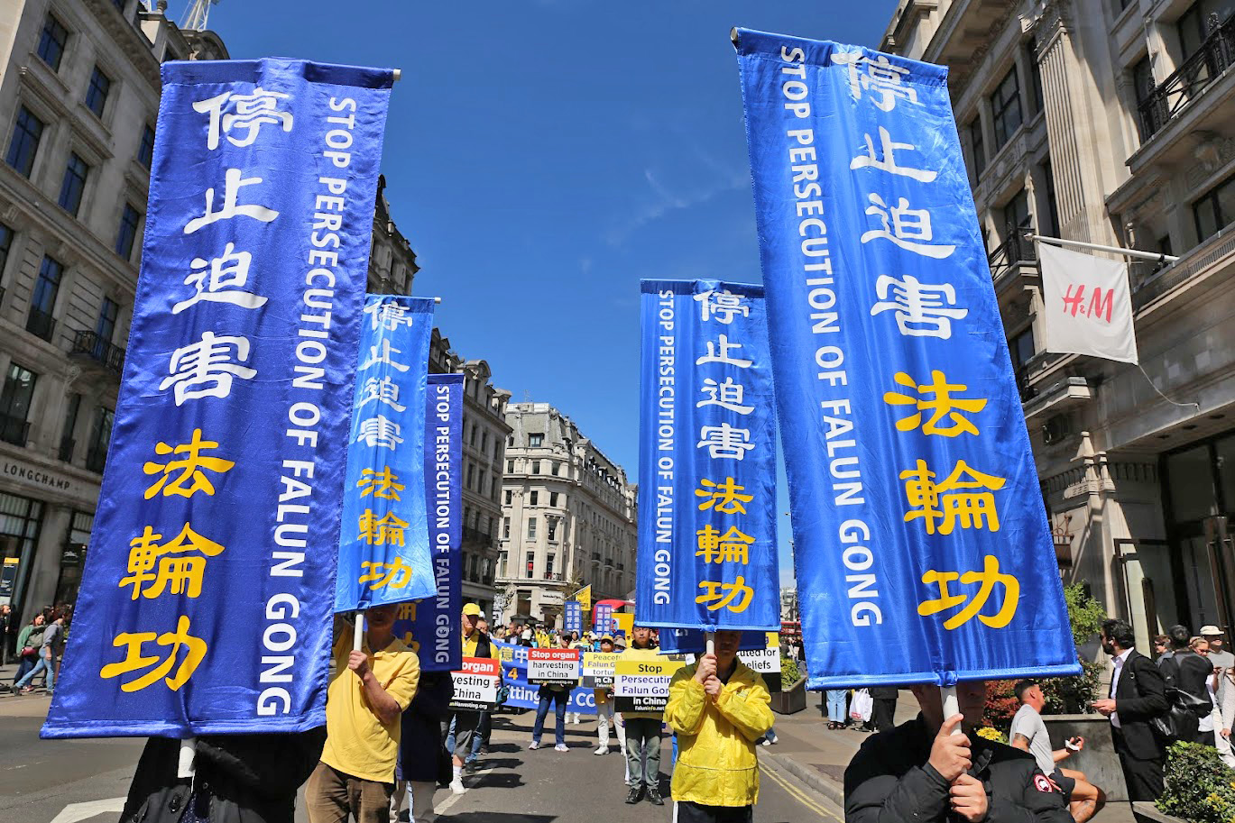 Parada rozpoczęła się przed ambasadą chińską, przeszła przez najbardziej ruchliwe dzielnice centrum Londynu i Chinatown, a zakończyła się na Trafalgar Square. Następnie odbyła się konferencja prasowa. Praktykujący trzymali transparenty z napisami „Falun Dafa jest wspaniałe” i „Przestańcie prześladować Falun Gong”. Wiele osób zatrzymywało się, aby obejrzeć paradę.