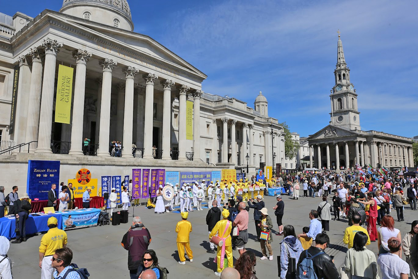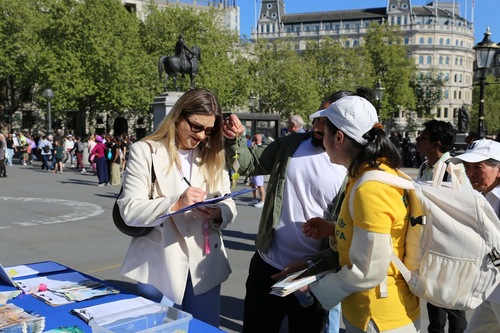25 kwietnia 2026 r. praktykujący zorganizowali akcję na Trafalgar Square i informowali przechodniów o prześladowaniach w Chinach