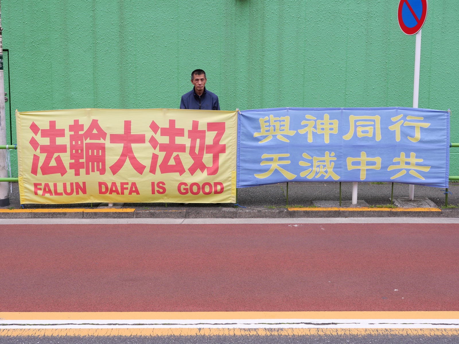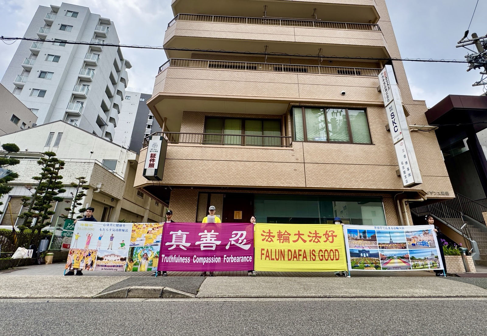 Praktykujący zorganizowali pokojowy protest przed chińskim konsulatem w Nagoi 25 kwietnia 2026 roku, eksponując cztery transparenty z hasłami: „Falun Dafa jest dobre”, „Prawda-Życzliwość-Wyrozumiałość”, „Falun Dafa rozprzestrzeniło się na cały świat” oraz „Falun Gong korzystnie wpływa na zdrowie fizyczne i psychiczne”.