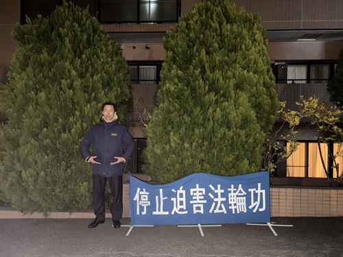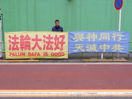 Praktykujący zebrali się 24 kwietnia przed chińskim konsulatem w Fukuoce, aby uczcić apel.