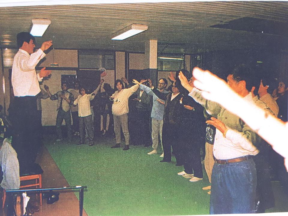 Mistrz Li po każdym wykładzie prowadził ćwiczenia stojąc na krześle, aby uczestnicy z tyłu sali mogli je wyraźnie zobaczyć. Wszyscy byli podekscytowani i szczęśliwi. Pracownicy ambasady zrobili sobie nawet grupowe zdjęcia z Mistrzem Li.